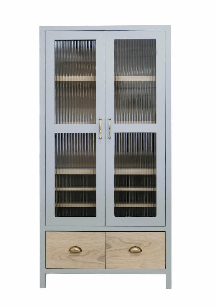 The Shaker Display Cupboard is a beautiful and functional piece of furniture that is perfect for showcasing your favorite dishes, glassware, or other home décor items. This cabinet is a mix of solid oak drawers and hand-painted wood, with glass panels above to display your items in a beautiful and elegant way.