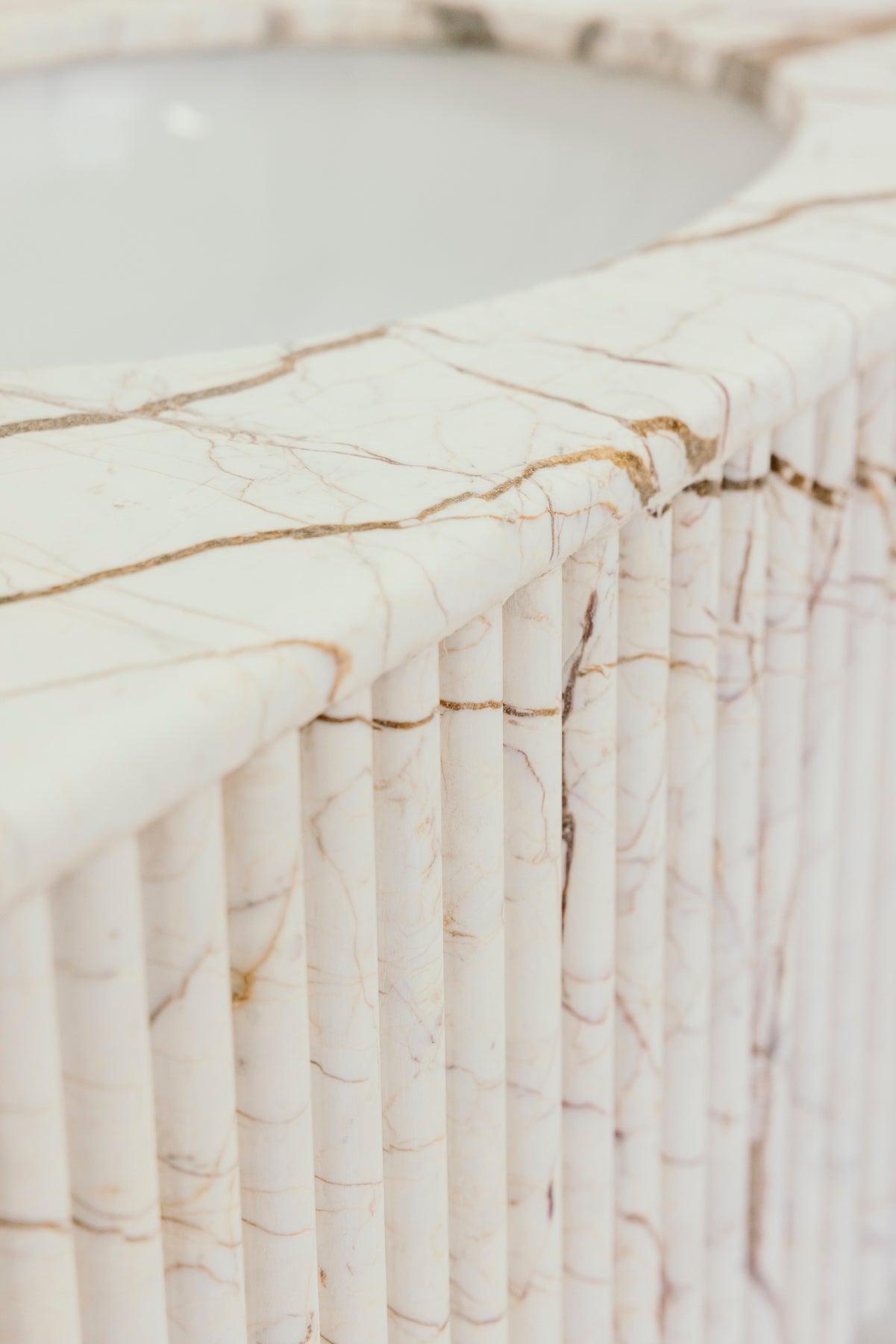 Compact in footprint yet monumental in character, The Solis Mono is a sculptural single-basin marble vanity designed to elevate smaller spaces with bold, timeless elegance. Its carved linear texture and naturally occurring marble patterns give it a refined yet organic aesthetic, while the integrated basin makes for a seamless and luxurious user experience.