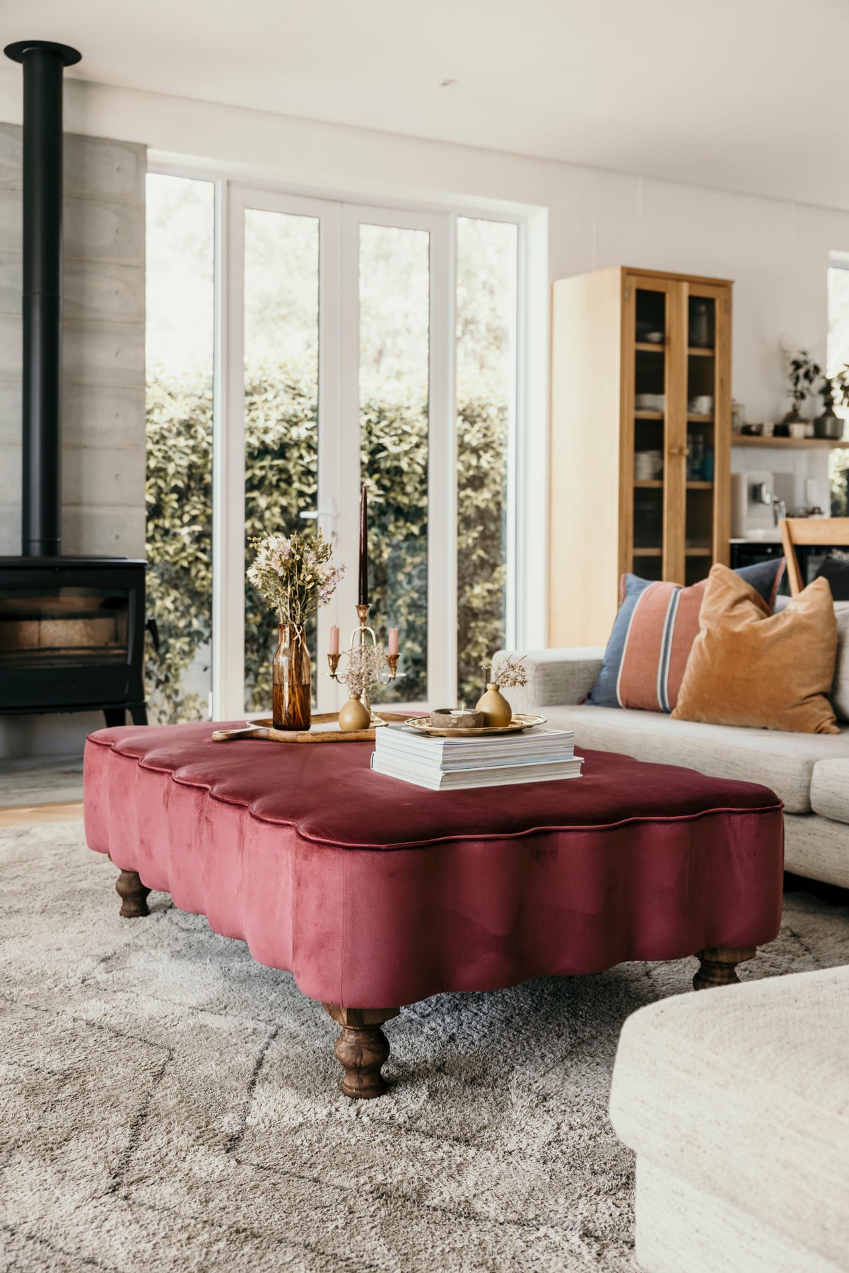A nostalgic nod to design, with a twist. The Simon Ottoman brings character to any space with its distinctive wavy edge and charming turned legs—available in two timeless wood stains. Whether tucked under a bookshelf or placed at the foot of a bed, it’s a graceful blend of sculptural form and everyday function. Best paired with cozy reads and late afternoon light.