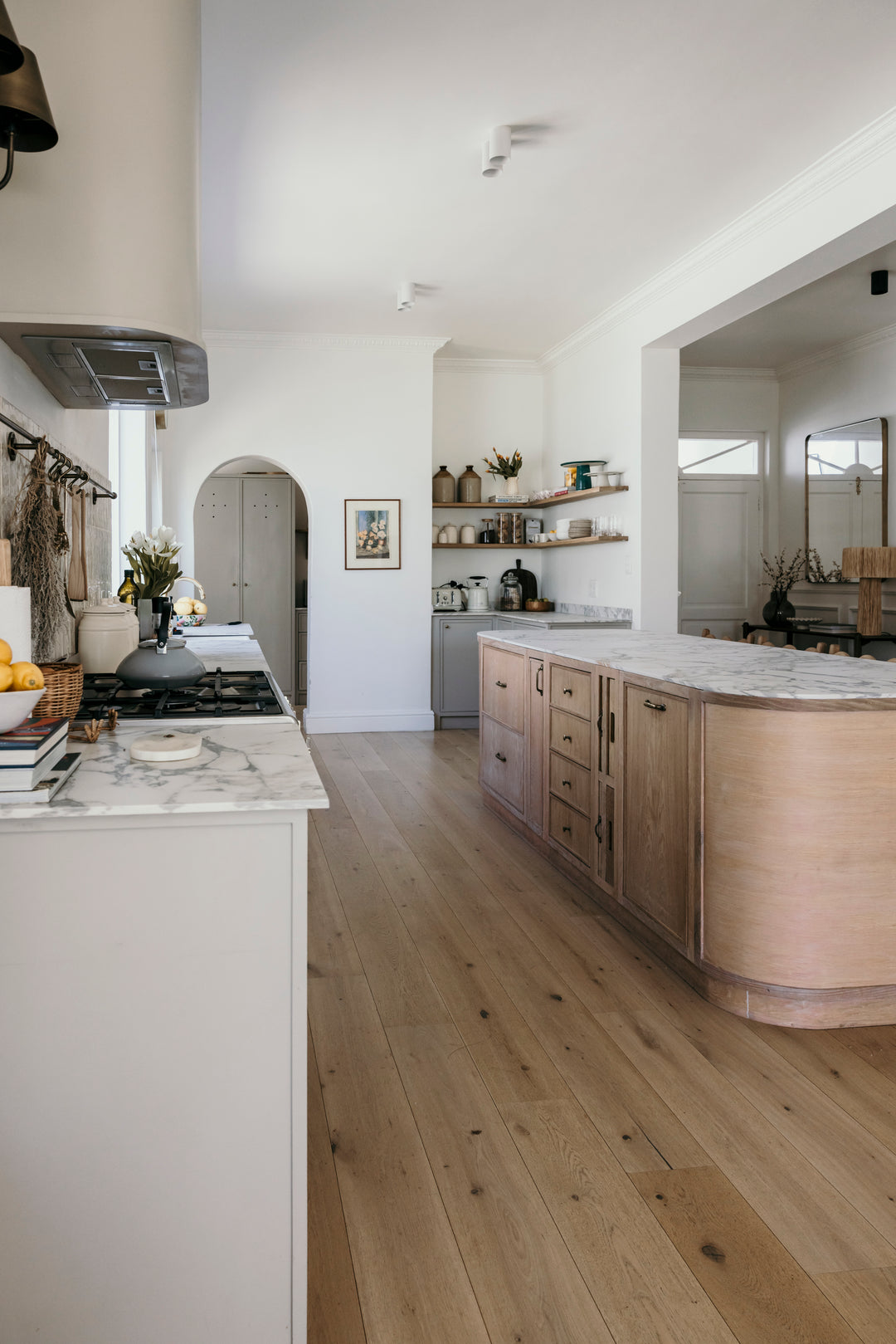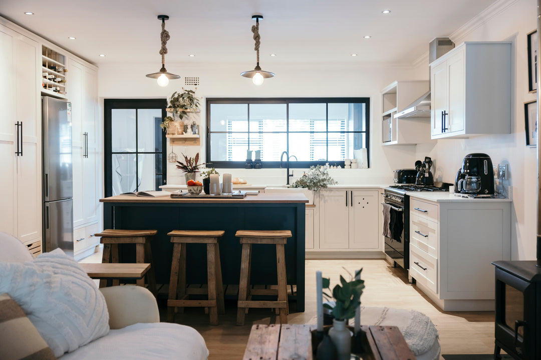 A mix of Scandi and Shaker styles work seamlessly in this coastal kitchen painted in Addo and Westminster.