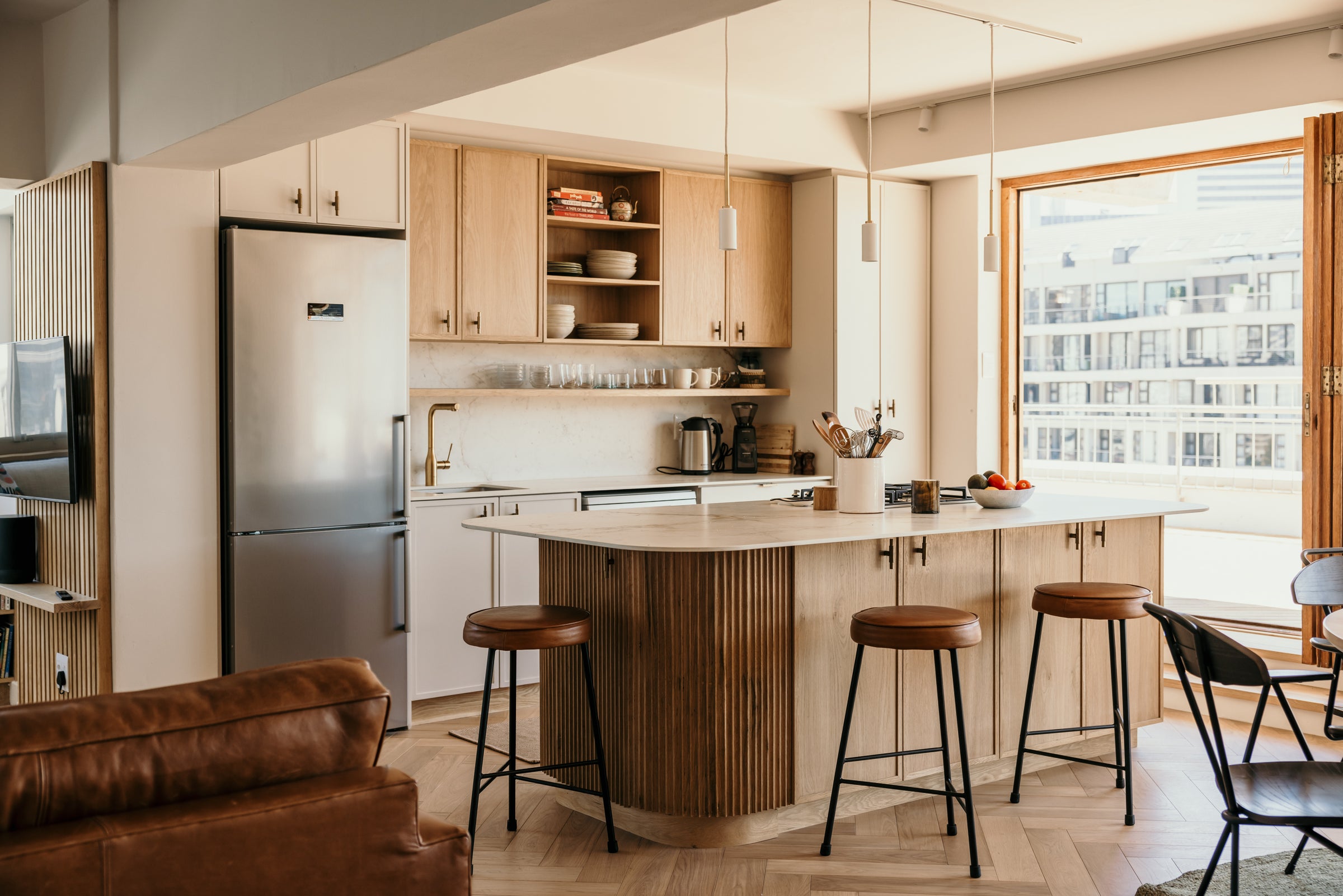 Every aspect of our kitchens is meticulously crafted by hand, ensuring unparalleled quality and attention to detail. From the smooth edges to the varying widths of the edging, each element is carefully considered and expertly executed. Oak takes center stage in our designs, exuding warmth and character throughout the space.